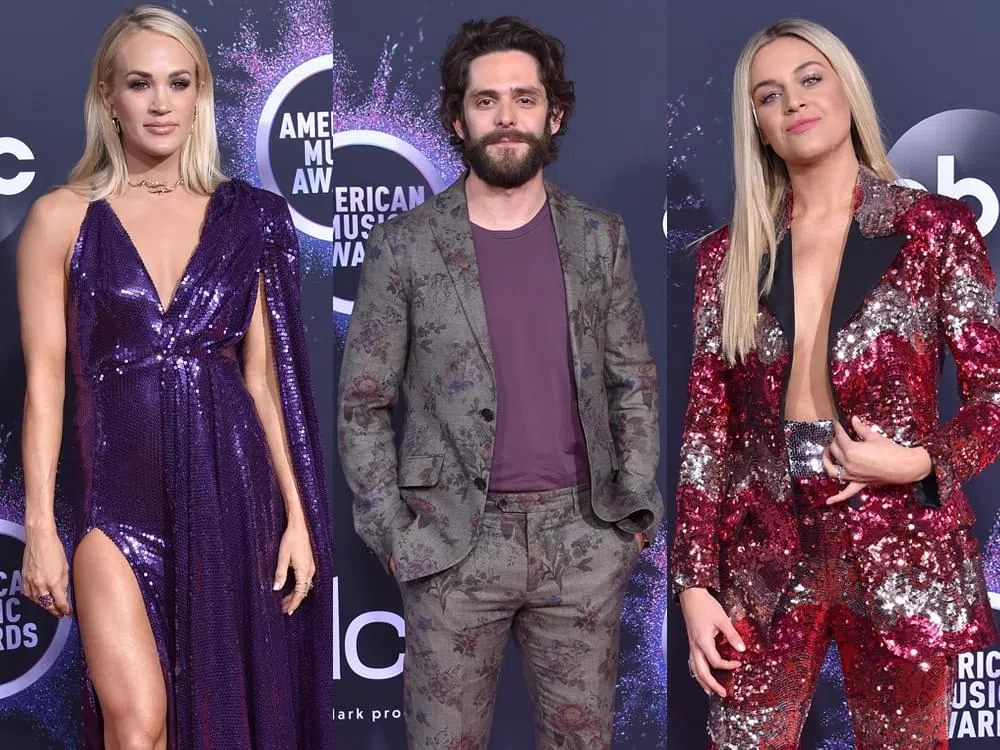 Before the 2019 American Music Awards were handed out at the Microsoft Theater in Los Angeles on Nov. 24, many country stars walked the red carpet, including performers Shania Twain and Thomas Rhett, winners Carrie Underwood, Kane Brown and Dan + Shay, presenter Kelsea Ballerini and more.