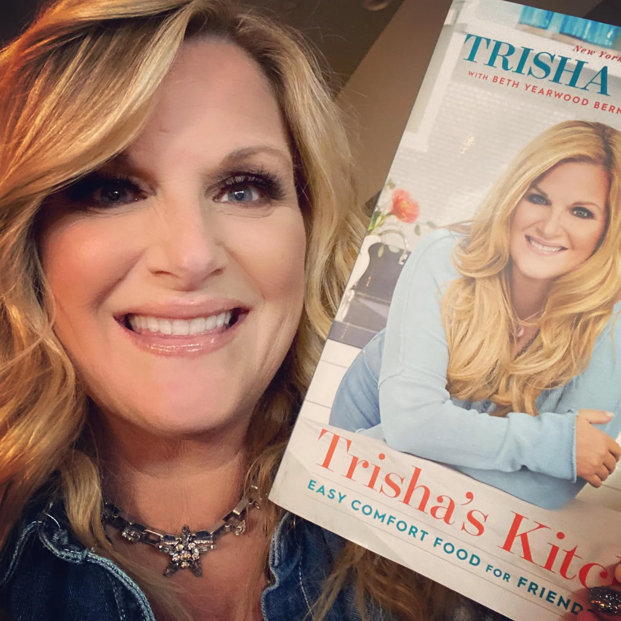 She recently revealed the cover of her upcoming cookbook, Trisha’s Kitchen – Easy Comfort Food for Friends and Family.