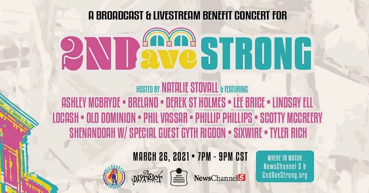 Nashville is using music to help the businesses and people affected by the Christmas Day 2020 bombing with the 2nd Ave Strong Benefit concert.Taking place this past Friday, March 26th – the star...